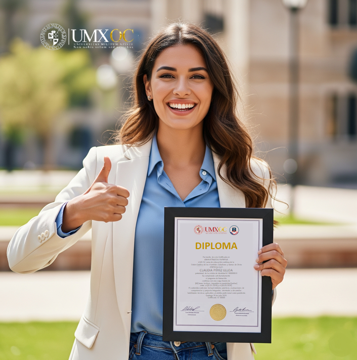 Al finalizar tu proceso formativo en UMX OC, recibirás un certificado o diploma de participación que acredita tu compromiso, aprendizaje y vocación transformadora. Este reconocimiento institucional refleja tu contribución al modelo educativo ético, inclusivo y aplicado que promovemos desde la Orden Católica de los Humildes Caballeros y Damas de Cristo.